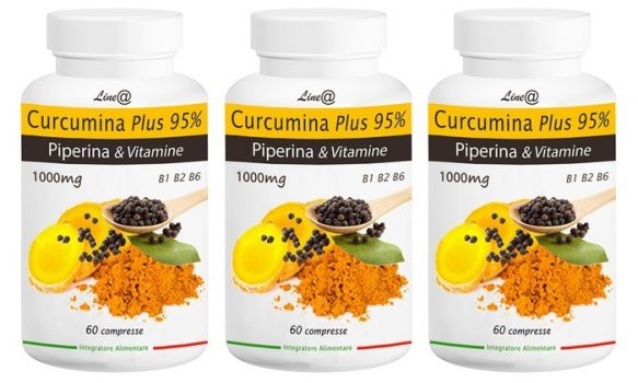 Le curcuma (Curcuma longa L.) rhizome e.s. titré à 95% en curcuminoïdes et à 76% en curcumin; poivre noir fruits (Piper nigrum) titrés titré à 95% en pipérine, le chlorhydrate de pyridoxine (vitamine B6.), la riboflavine (vitamine B2.), du chlorhydrate de thiamine (vitamine B1.), des agents de charge: carbonate de calcium, la cellulose; amidon de maïs prégélatinisé, des agents anti-agglomérant: sels de magnésium d’acides gras, du dioxyde de silicium.