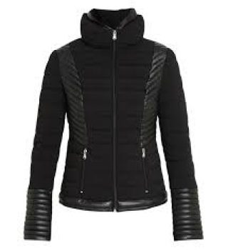 Doudoune stretch courte et cintrée, imperméable et coupe-vent, ornée d’empiècements effet cuir en ton sur ton. Elle se dote d’un double col montant, de manches longues zippées et d’une fermeture à glissière. 2 poches à zip sur le devant.