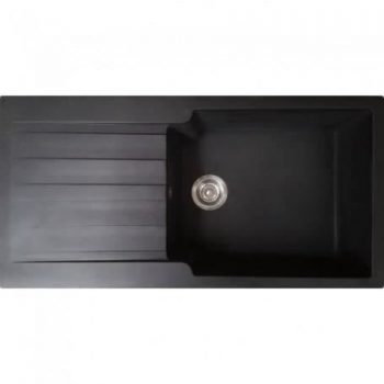 Evier en résine noir 1000×500 mm – Profondeur cuve 210 mm – Grande cuve 525x430x210 mm – 1 Egouttoir – Pattes de fixations incluses – Evacuation ø 90 mm – Encastrable – Joint étanchéité fourni.