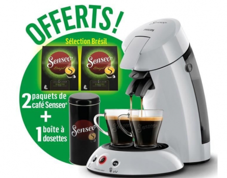 PHILIPS SENSEO Original HD6554/53 + boîte de rangement dosettes + 2 paquets de café Senseo Sélection Brésil offerts – Gris clair