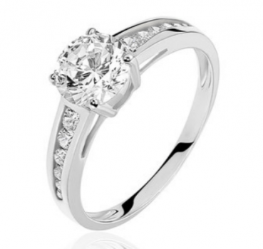 Matière : Or 375/1000 ème Poids moyen Or : 1,66 g Couleur du métal : Blanc Nature de la pierre principale : Oxyde de Zirconium Couleur de la pierre principale : Blanche Forme globale : Solitaire Sertissage : 4 griffes Pierres :